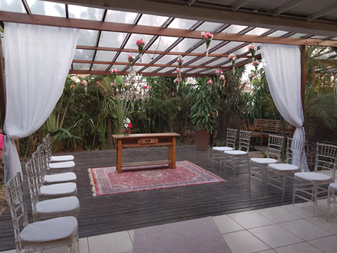 Espaço totalmente integrado com a natureza, ideal para casamentos